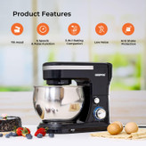 این دستگاه دارای سه وسیله همزن است: همزن، قلاب خمیر، همزن برای کیک، خمیر، نان، دسر و موارد دیگر. پایه های مکش ضد لغزش میکسر آشپزخانه را ثابت نگه می دارد و حتی در حال کار نیز هیچ جابجایی ندارد.