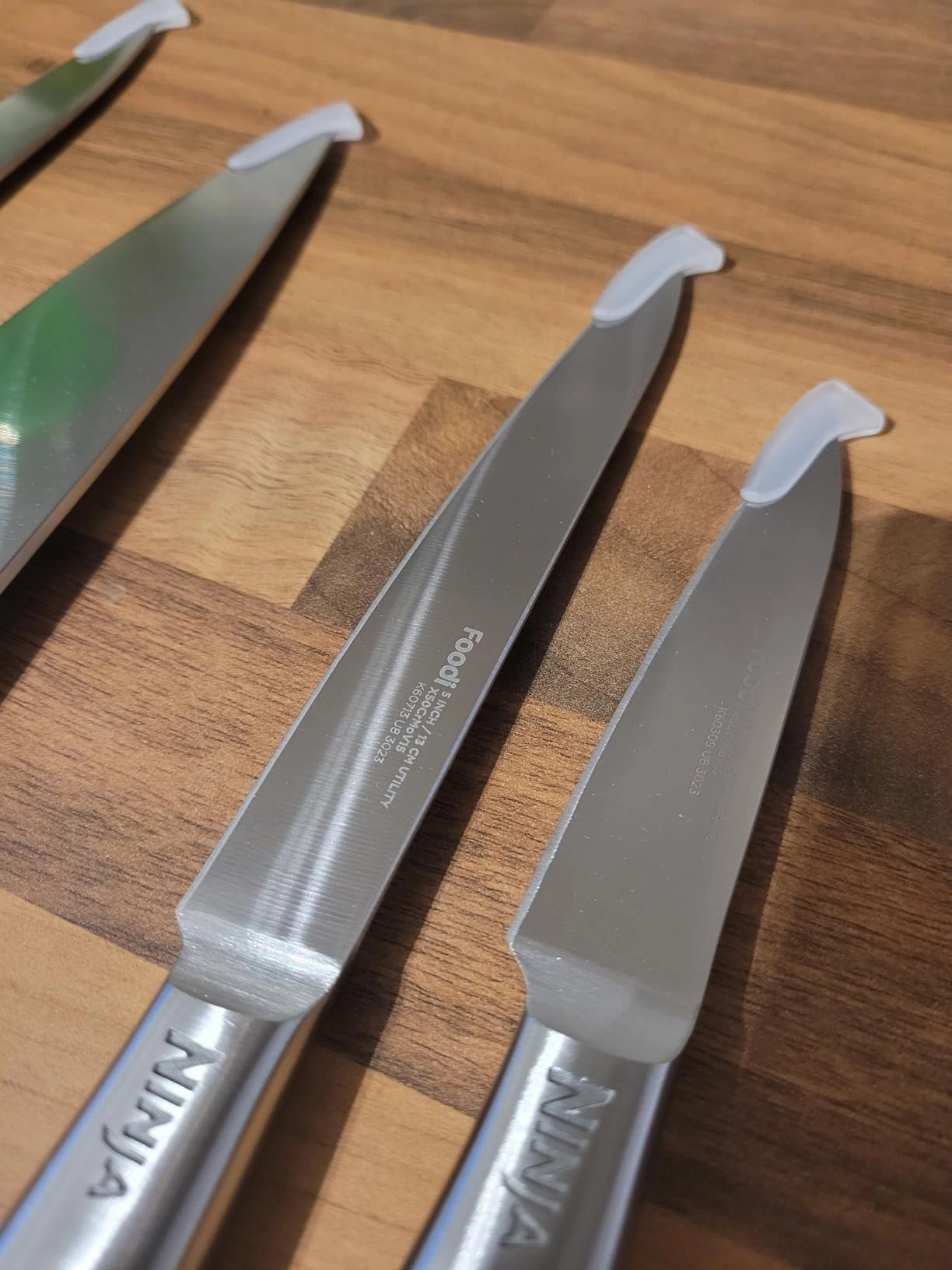 فولاد ضد زنگ: ساخته شده از فولاد ضد زنگ آلمانی جعلی چاقوهای نینجا دارای ساختار پرچ دوتایی بادوام هستند مقاوم در برابر زنگ زدگی و به اندازه کافی قوی برای تمام کارهای برش در آشپزخانه شما.
