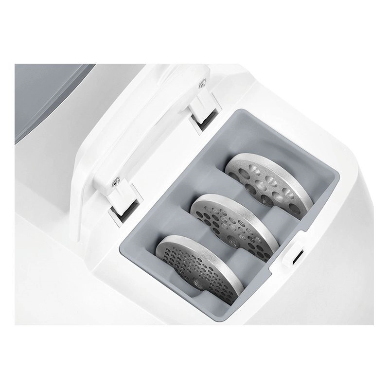 می توانید از کبه ساز این مدل چرخ گوشت برای تهیه کبه های خوشمزه خانگی استفاده نمائید. یکی از ویژگی های مهم این محصول داشتن سینی بزرگ و مناسب، همچنین محفظه ای برای جمع آوری سیم برق می باشد. چرخ گوشت ۶۶۰۲۰ دارای یک محفظه مناسب برای نگهداری دیسک های مشبک نیز می باشد.