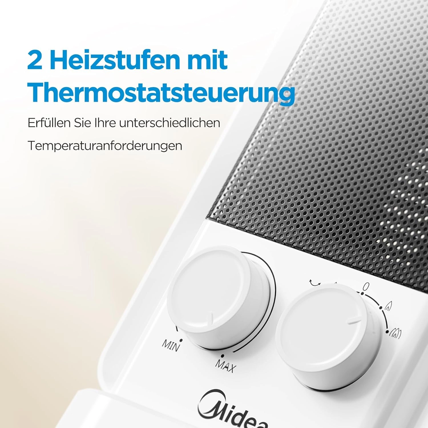 گرمایش ترموستات حالت سازگار با محیط زیست: بخاری فن Midea با صرفه جویی در انرژی دما را از طریق دکمه 5-35 درجه سانتیگراد تنظیم می کند و مجهز به سیستم تشخیص دقیق دما است که دمای اتاق ثابت را تضمین می کند.