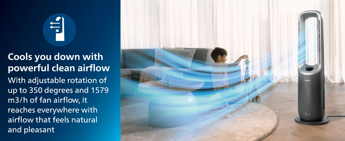 خنک کننده قدرتمند: گرمای تابستان را با جریان هوای قوی و تمیز شکست دهید. به لطف طراحی بدون تیغه آن، وزش هوا را از بین نمی برد و جریان هوای تازه ای را ارائه می دهد که به 1579 متر مکعب در ساعت می رسد.