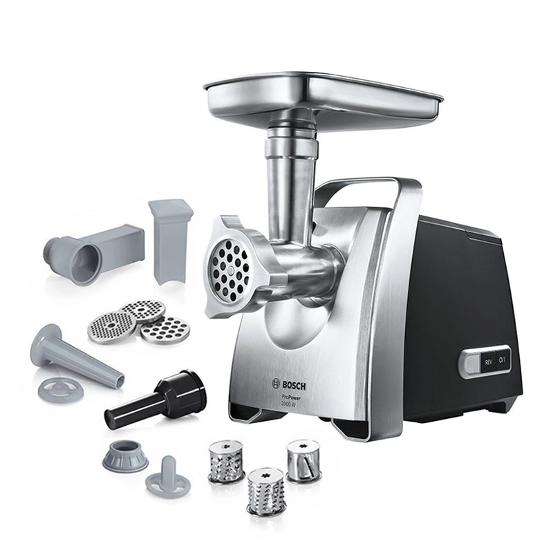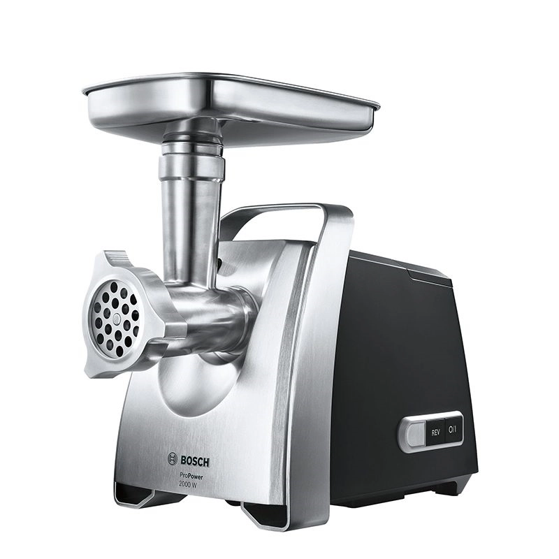 چرخ گوشت بوش مدل BOSCH MFW68640، با توان مصرفی 800 واتی و توان بازدارنده 2200 واتی با قابلیت چرخ کردن مقدار بالایی از گوشت و همچنین تنوع در عملکرد بر روی مواد غذایی مختلف یکی از بهترین انتخاب های ممکن در سطح بازار برای خرید چرخ گوشت است. به لطف موتور قدرتمند و تیغه هایی از جنس استیل دستگاه قادر خواهید بود در مدت زمان کوتاه و بسیار سریع حجم قابل توجه 4.3 کیلوگرم در دقیقه از گوشت را چرخ کنید. چرخ گوشت 68640 بوش همچنین دارای 10 عملکرد متفاوت برای چرخ یا خرد کردن مواد غذایی مختلف از قبیل ماهی و مرغ و سبزیجات نیز است. با بهره گیری از عملکرد معکوس در هنگام مسدود شدن مخزن و شبکه با مواد سخت مثل استخوان دستگاه چرخ گوشت مواد را از گلویی عقب رانده و دوباره آماده کار خواهد شد. با انعطاف تنظیمات چرخ گوشت BOSCH MFW68640 هیچ محدودیتی برای میزان برش و رنده کردن انواع مختلف مواد غذایی از قبیل سبزیجات، پنیر و یا حتی شکلات نخواهید داشت. با توجه به وجود سه شبکه با سه قطع متفاوت 3، 8/4 و 8 میلیمتری قادر به چرخ یا برش مواد غذایی به میزان مدنظر خود خواهید بود. سبزیجات و میوه های رشته ای، سوسیس، برش های مربوط به گوشت های کبابی، همگی با استفاده از چرخ گوشت 68640 بوش قابل تهیه هستند. ضمن اینکه بدلیل جنس استیل ضد زنگ قطعات مختلف دستگاه از قبیل تیغه ها، گلویی و شبکه ها امکان شستشوی آنها حتی در ماشین ظرفشویی وجود دارد.