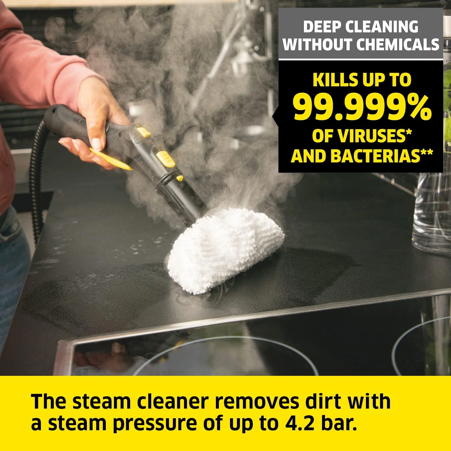 بخارشوی مدل SC 5 EasyFix با قدرت رو به جلو حرکت میکند! به این دلیل است که قویترین بخارشو در کلاس خود (فشار بخاری معادل ۴.۲ بار)، گزینهای برای اتصال به اتو فشار بخار نیز دارد. با استفاده از بخارشوی، ۹۹.۹۹۹٪ ویروس کرونا، ۹۹.۹۹٪ باکتریهای متداول در منزل را از روی سطوح سخت پاک میکند. با استفاده از لوازم جانبی گوناگون میتوان کاشیها، گاز، هود آشپزخانه و حتی فواصل کوچک را فوقالعاده تمیز کرد. نازلهای محرک و انعاطف پذیر، توان کار ارگونومیک را فراهم میکند.
