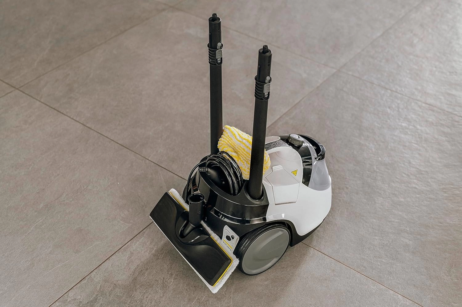 و تکنولوژی لاملا، سطح تمیزی بسیار بالایی را تضمین میکند. پد حولهای از جنس میکروفیبر، به راحتی به نازل متصل میشود. همچنین به راحتی میتوان پد را از نازل جدا کرد. عملکرد VapoHydro تمام لکهها و آلودگیهای سخت را با استفاده از آب داغ پاک میکند. میزان خروجی بخار با توجه به نوع آلودگی و سطح، قابل تنظیم است. مخزن آب توان SC5 توانایی جدا شدن و پر شدن دوباره را دارد. این ویژگی توان دائم کار بودن را برای دستگاه امکان پذیر میکند.