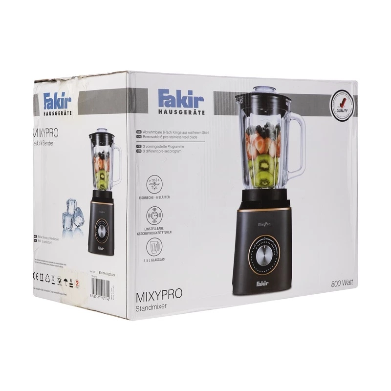 مخلوط کن فکر مدل Mixypro بدنه ای متشکل از 2 بخش دارد که یکی به عنوان بدنه ی اصلی یا همان پایه ی دستگاه از جنس استیل است و دیگری پارچی می باشد که بر روی این پایه نصب قرار داده می شود.