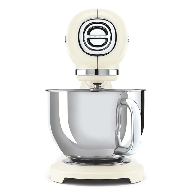 همزن برقی SMF03CRUK شرکت اسمگ با توان 800 وات کار شما در آشپزی، پخت کیک، آماده سازی خمیر پیتزا و هم زدن تمام مواد غذایی بسیار آسانتر میکند. موتور DIRECT DRIVE این دستگاه به شما امکان دسترسی به 10 سطح سرعت را میدهد. موتور در قسمت سری یا بالایی محصول قرار گرفته شده است که موجب حرکت یکنواخت و یک دست مواد غذایی شما میشود. شروع به کار دستگاه بسیار روان خواهد بود تا مواد غذایی شما به اطراف پاشیده نشود، سطح سرعت 1 آهسته و روانترین و سطح 10 سریعترین سرعت آن است. در تولید این محصول از طراحیهای دهه 1950 میلادی به کار گرفته شده است و با خود احساس نوستالژی قدیم را به همراه دارد. اسم این سری از تولیدات شرکت اسمگ 50S STYLE نام دارد و در این سری از تولیدات خود تمام لوازم آشپزخانه را از طراحیهای دهه 50 میلادی الهام گرفته است و با استفاده از یک دکوراتو حرفهای میتوانید حال و هوای خاصی را به آشپزخانه منزل خود ببخشید. کاسه دستگاه با ظرفیت 4.8 لیتر توانایی آماده کردن حجم بالایی از مواد غذایی را دارد. جنس این کاسه از استیل ضد زنگ است تا به علت واکنشهای شیمیایی طعم و کیفیت مواد غذایی شما تغییری پیدا نکند و در آخر بعد از اتمام کار فرآیند نظافت آن راحتتر باشد. با استفاده از ظرفیت این کاسه میتوانید حداقل 100 میلی لیتر خامه و حداکثر 1 لیتر خامه فرم گرفته شده، حداقل دو سفیده تخم مرغ و حداکثر 12 سفیده تخم مرغ، خمیر برای تهیه شیرینی 2.6 کیلوگرم، خمیر پاستا 500 گرم به همراه سه عدد تخم مرغ و خمیر نان و پیتزا به میزان 1.8 کیلوگرم و یا 1.2 کیلوگرم آرد را برای فرآیند پخت آماده کنید.لوازم جانبی که برای این دستگاه تعبیه شده است شامل سری همزن استیل ضد زنگ با لبههای سیلیکونی انعطاف پذیر برای مخلوط کردن خمیرهای نرم،سری همزن سیمی استیل ضد زنگ برای مخلوط کردن، هم زدن و برای تهیه مخلوطی کف کرده مانند کره، تخم مرغ، خامه و … و همچنین میتوان برای تهیه کرم،کاستارد، سس و … ، سری همزن قلاب شکل آلومینیومی برای ترکیب آهسته، مخلوط کردن و ورز دادن انواع خمیر مانند نان، ماکارونی، پیتزا و … و همچنین برای تهیه خمیر با کشش عالی و سری همزن مسطح آلومینیومی برای ترکیب، مخلوط کردن، تهیه مخلوطی نرم و حجیم و برای تهیه خمیر کیک و شیرینی، بیسکوییت، آیسینگ، برای خمیرهای ضخیم و … از جمله لوازم جانبی است که برای این دستگاه تعبیه شده است. تمامی قطعات جدا شونده قابلیت شستشو در ماشین ظرفشویی را نیز دارند. برای محافظت از شما در حین کار با دستگاه از قفل ایمنی برای جلوگیری از پاشش و لق زدن آن و پایه لاستیکی برای ثبات بیشتر از جمله مواردی است که رعایت شده تا یک تجربه عالی را برای شما رقم بزند. سیستم جلوگیری از داغ شدن بیش از حد موتور موجب میشود تا طول عمر دستگاه شما افزایش یابد و هیچ گاه به موتور آن آسیبی وارد نشود.