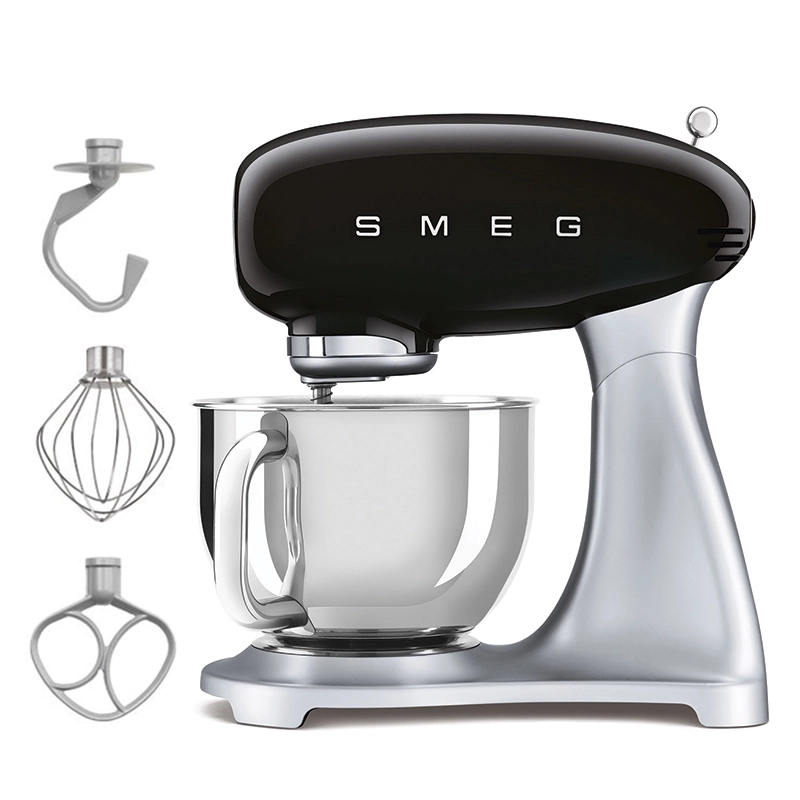 طراحیهای کلاسیک، رنگبندیهای خاص و چشمنواز از بارزههای همیشگی محصولات اسمگ بوده که همواره موجب جلب نظر مخاطبین این برند محبوب شده است. موتور این همزن کاسه دار Direct Drive و دارای عملکرد قابل قبول بوده که در 10 سرعت قابل تنظیم است. حرکت سیارهای شکل همزن موجب ایجاد ترکیبی یکنواخت خواهد شد. بااینحال ساختار فلزی مقاوم میکسر با کنترل میزان لرزش، ایمنی انجام فرایند را افزایش میدهد. کاسه استیل ضدزنگ همزن SMF02 دارای ظرفیت 4.8 لیتری بوده که امکان تهیه ترکیبات تا مقادیر قابل قبولی را مهیا میکند. علاوه بر قابلیت تنظیم فرایند در 10 سرعت متفاوت، به لطف عملکرد SMOOTH START شروع به کار همزن با حداقل سرعت ممکن صورت میگیرد تا از سرریز شدن و پاشیدن مواد غذایی به خارج از کاسه جلوگیری شود. بهرهگیری از لوازم جانبی متنوع از جمله 3 سری بهمنظور انجام تهیه مواد غذایی مختلف، سیستم جلوگیری از داغ شدن بیش از حد موتور، سیستم جلوگیری از داغ شدن بیش از حد موتور، قفل ایمنی هنگام خم شدن سر دستگاه و قابلیت شستشوی قطعات در ماشین ظرفشویی دیگر امکانات همزن برقی اسمگ مدل SMEG SMF02BDUK محسوب میشود.