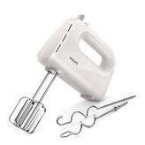 همزن برقی فیلیپس مدل PHILIPS HR3705، دستگاه 300 واتی با بهره گیری از موتوری قدرتمند و در عین حال سبک و کم سر و صدا از تولیدات برند فیلیپس است. طراحی سبک و ارگونومیک همزن برقی و همچنین قابلیت تنظیم در 5 سرعت متفاوت تهیه ترکیبات و یا خمیرهای کیک را تا 20% سریع تر امکان پذیر کرده است. با برخورداری از دکمه خروج روی دستگاه با یک لمس آسان اقدام به خروج و جایگزینی میله های متفاوت کنید. همزن برقی HR3705 فیلیپس دارای 2 میله همزن توربو استیل ضد زنگ برای مخلوط کردن و هم زدن بسیار سریع و بدون نقص و همچنین 2 قلاب خمیر زنی استیل ضد زنگ مناسب برای مصارف سنگین میباشد. انتخاب 5 سرعت متفاوت انضمام عملکرد توربو امکان ایجاد تنظیمات مناسب برای فعالیت مدنظر شما را مهیا میکند. وجود دستگیره ضد لغزش برای استفاده به خصوص در تنظیمات بالایی سرعت، قابلیت تفکیک قطعات و شستشوی راحت آن های حتی در ماشین ظرفشویی و طراحی سبک و خوش دست از دیگر امکانات همزن برقی فیلیپس مدل PHILIPS HR3705 میباشد.