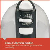 قابلیت تنظیم سرعت آن در ۵ حالت مختلف از قابلیت های برجسته و ویژه دستگاه می باشد. همچنین دستگاه مجهزبه عملکرد توربو نیز می باشد. عملکرد توربو یا چرخش سریع امکان همزدن بسیار سریع مواد غذایی را به شما می دهد. از این مدل همزن برای درست کردن خمیر نان، بستنی، زدن تخم مرغ، مخلوط کردن آرد و کره و هم زدن خامه و تهیهی انواع کیک و شیرینی می توانید استفاده فرمایید.