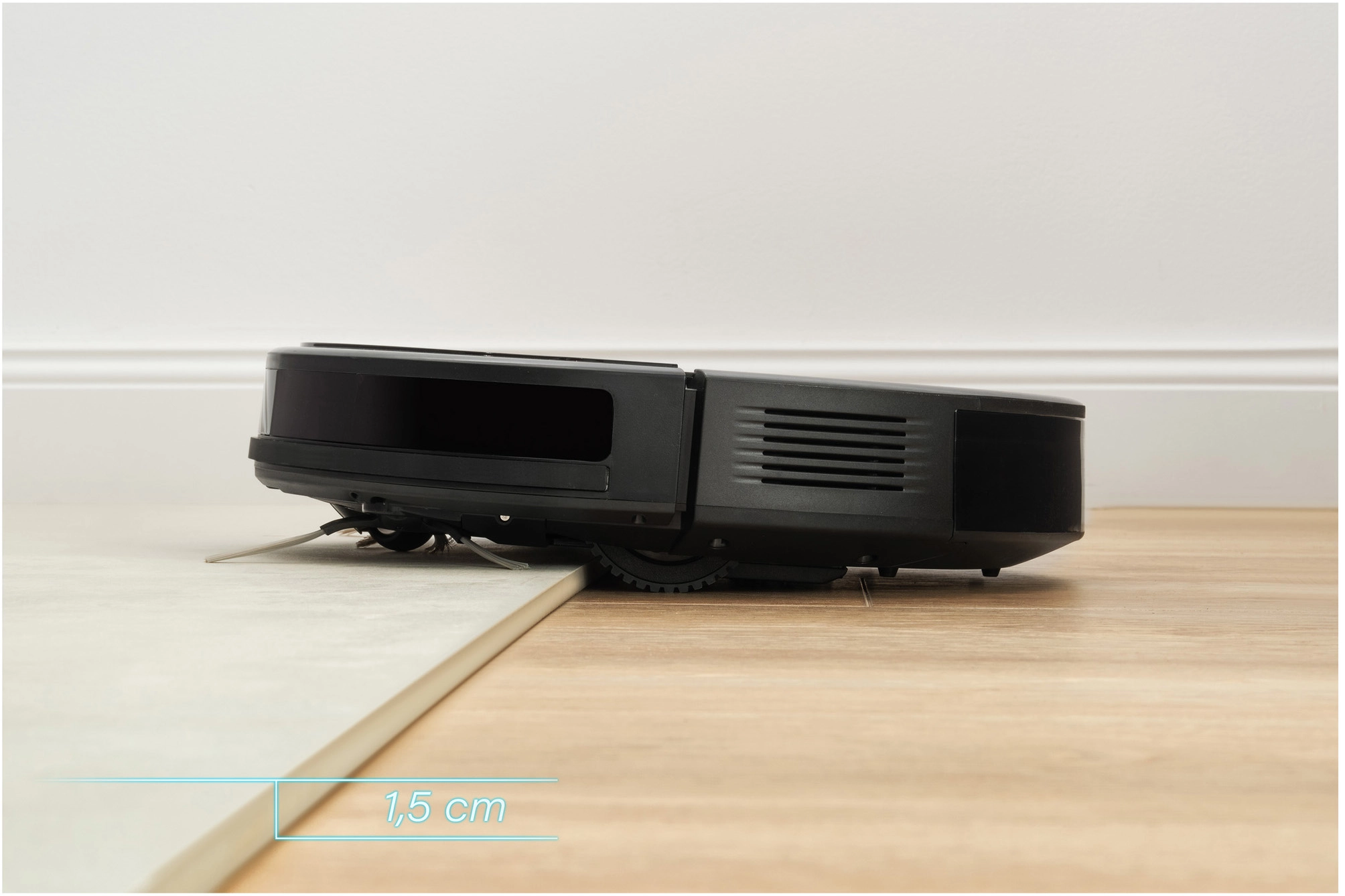 در قسمت جلویی دستگاه یک ضربه گیر نیم دایره ای به اصطلاح فنری تعبیه شده است که در صورت برخورد با مانع به آرامی از روی آن پریده و دور آن می چرخد. به لطف چرخ های لاستیکی موتوردار که از سطح کف در برابر خراش های احتمالی محافظت می کند، می توانید بر روی هر سطحی حرکت موثری داشته باشید. اگر با مانعی برخورد کند که دستگاه نتواند با آن مقابله کند، با یک سیگنال صوتی به کاربر هشدار می دهد.
