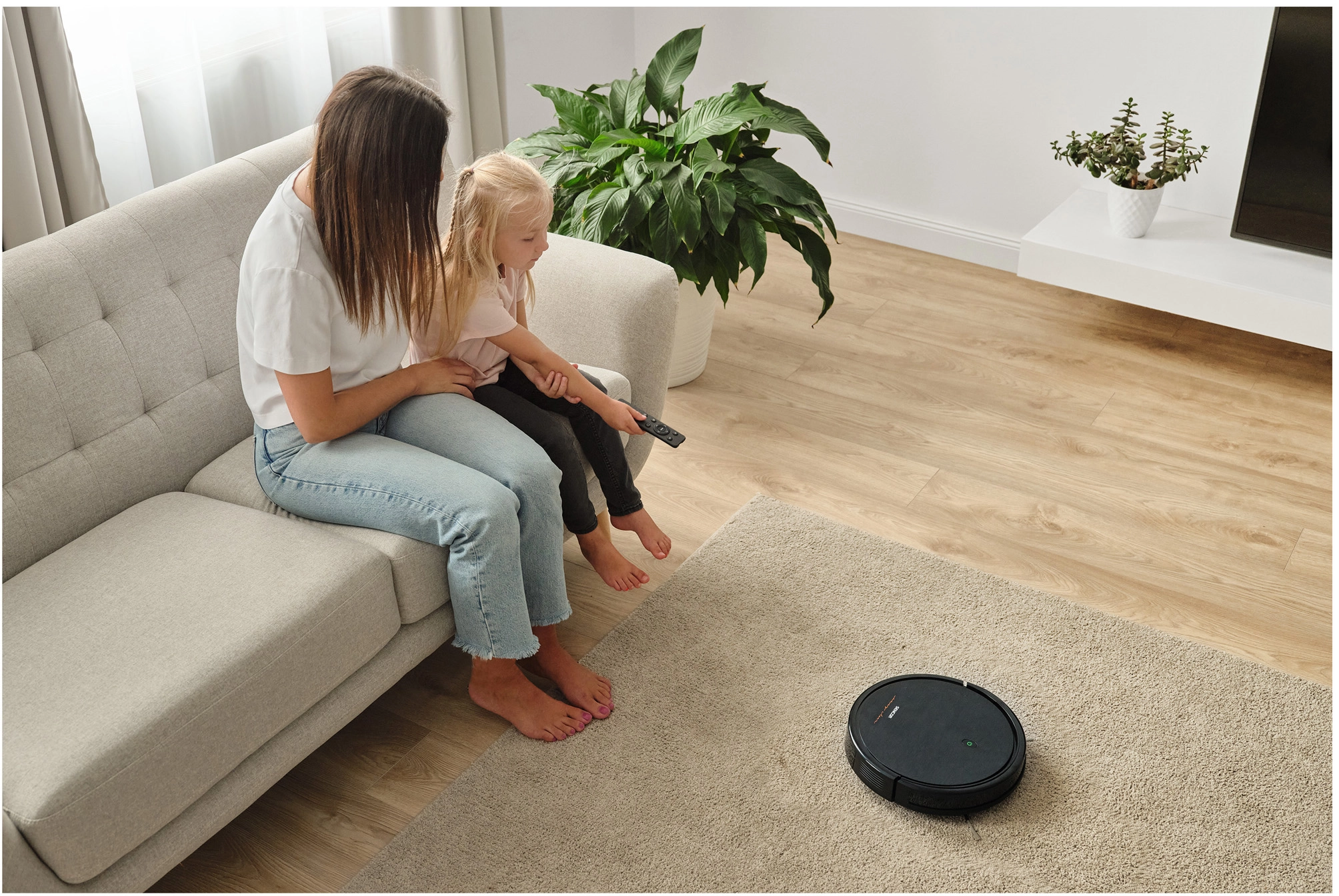جارو رباتیک سنکور SRV 3150 انتخابی ایده آل برای تمیز کردن کف های چوبی، پارکت، مشمع کف اتاق و کاشی های کف است. و هر کسی می تواند آن را استفاده کند. شما می توانید تمیز کردن با این دستگاه را مستقیماً روی ربات جاروبرقی یا به راحتی با کنترل از راه دور شروع کنید. به علاوه عملکرد اتاق هوشمند سنکور پوشش موثر سطحی را که قرار است جاروبرقی شود را تضمین می کند. با استفاده از این دستگاه می توانید یک برنامه 30 دقیقه ای تنظیم کنید، پس از آن جاروبرقی به طور خودکار به ایستگاه شارژ می رود یا می توانید از حالت خودکار برای تمیز کردن مناطق بزرگتر استفاده کنید. از آنجایی که ارتفاع این جارو رباتیک تنها 7.5 سانتی متر است، می تواند زیر مبلمان جا شود و از آنجایی که عرض آن زیاد نیست، به خوبی بین موانع حرکت می کند.