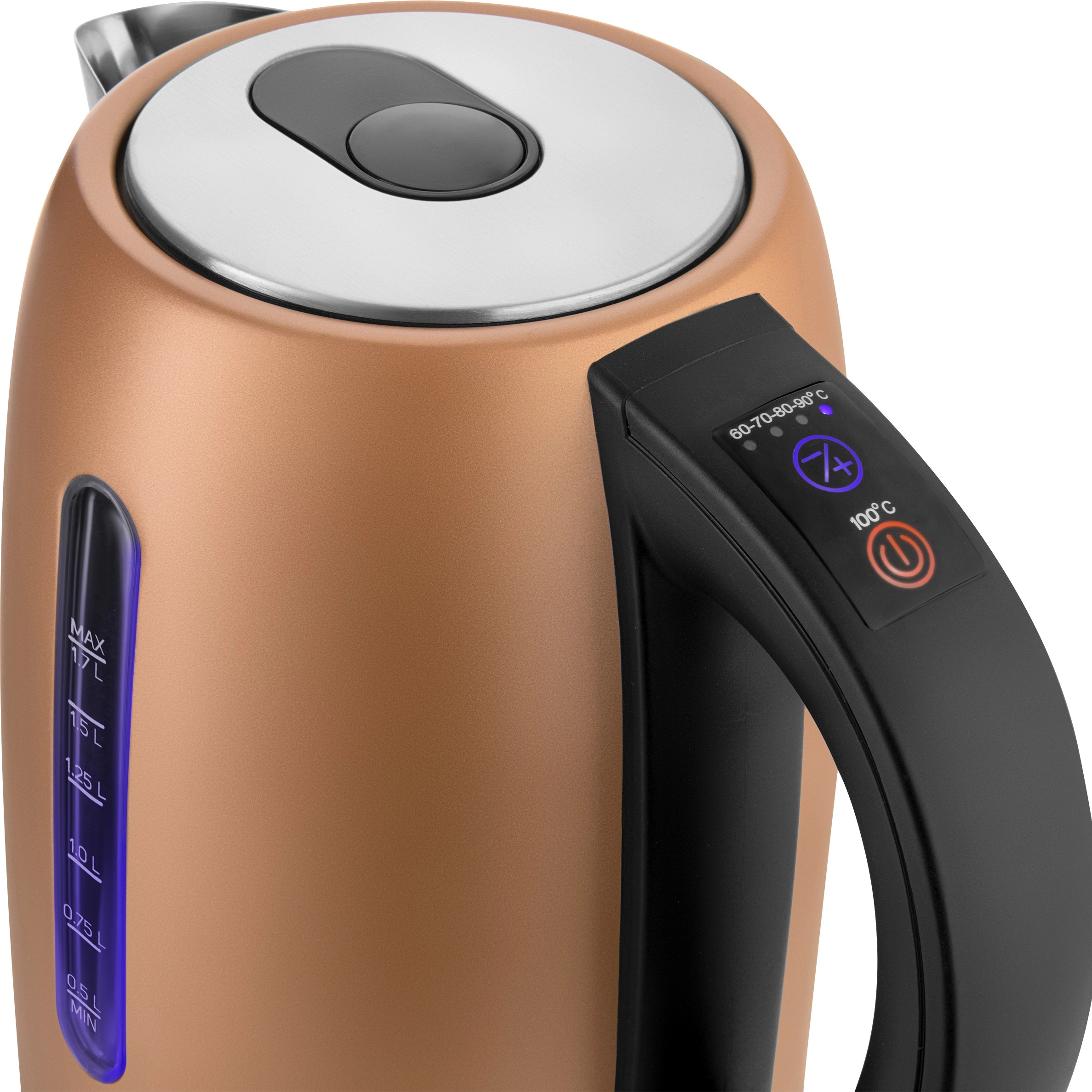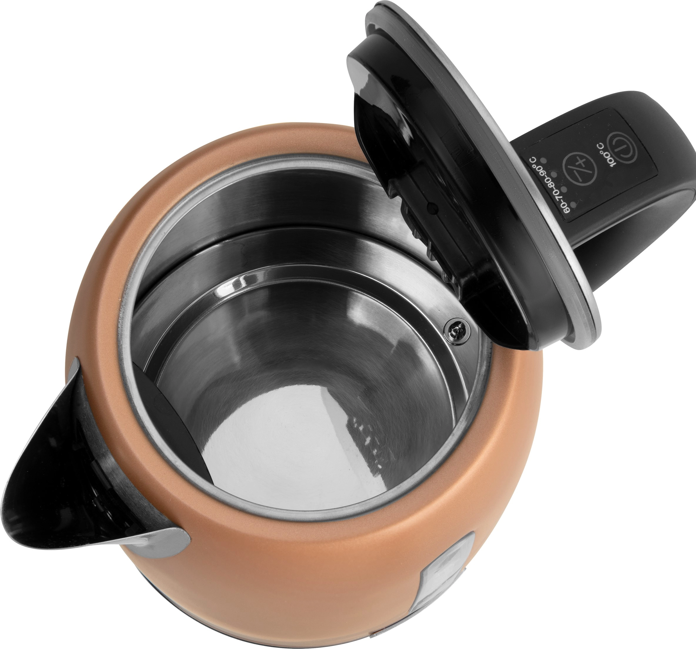 یکی از ویژگیهای منحصر به فرد این محصول، کنترل الکترونیکی دمای قابل تنظیم آن است. با امکان تنظیم دما در بازههای 60، 70، 80، 90 و 100 درجه سانتیگراد، کاربران میتوانند دمای آب را به دقت مطابق با نیاز خود تنظیم کنند. کتری SWK 7706 GD قابلیت گرم کردن آب تا دمای انتخابی را دارد. این ویژگی به کاربر این امکان را میدهد که آب را به دمای مورد نظر خود برساند و برای انواع مختلف نوشیدنیها و کاربردهای آشپزی مناسب باشد.