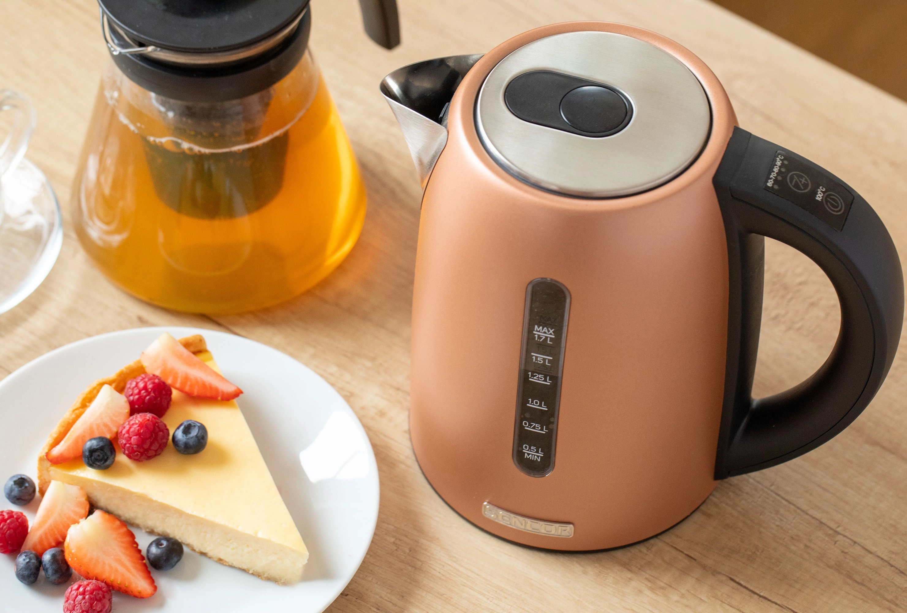 کتری برقی SWK 7706 GD با حجم 1.7 لیتر، مناسب برای تهیه آب جوش برای خانوادههای کوچک و متوسط است. طراحی مدرن و کاربردی این کتری، با توجه به وزن 720 گرم واحد پایه، به راحتی قابل جابجایی و استفاده است. این کتری با 2150 وات، توانایی جوشآوری سریع آب را فراهم میآورد. قدرت بالا باعث میشود که آب به سرعت به دمای مورد نظر برسد.