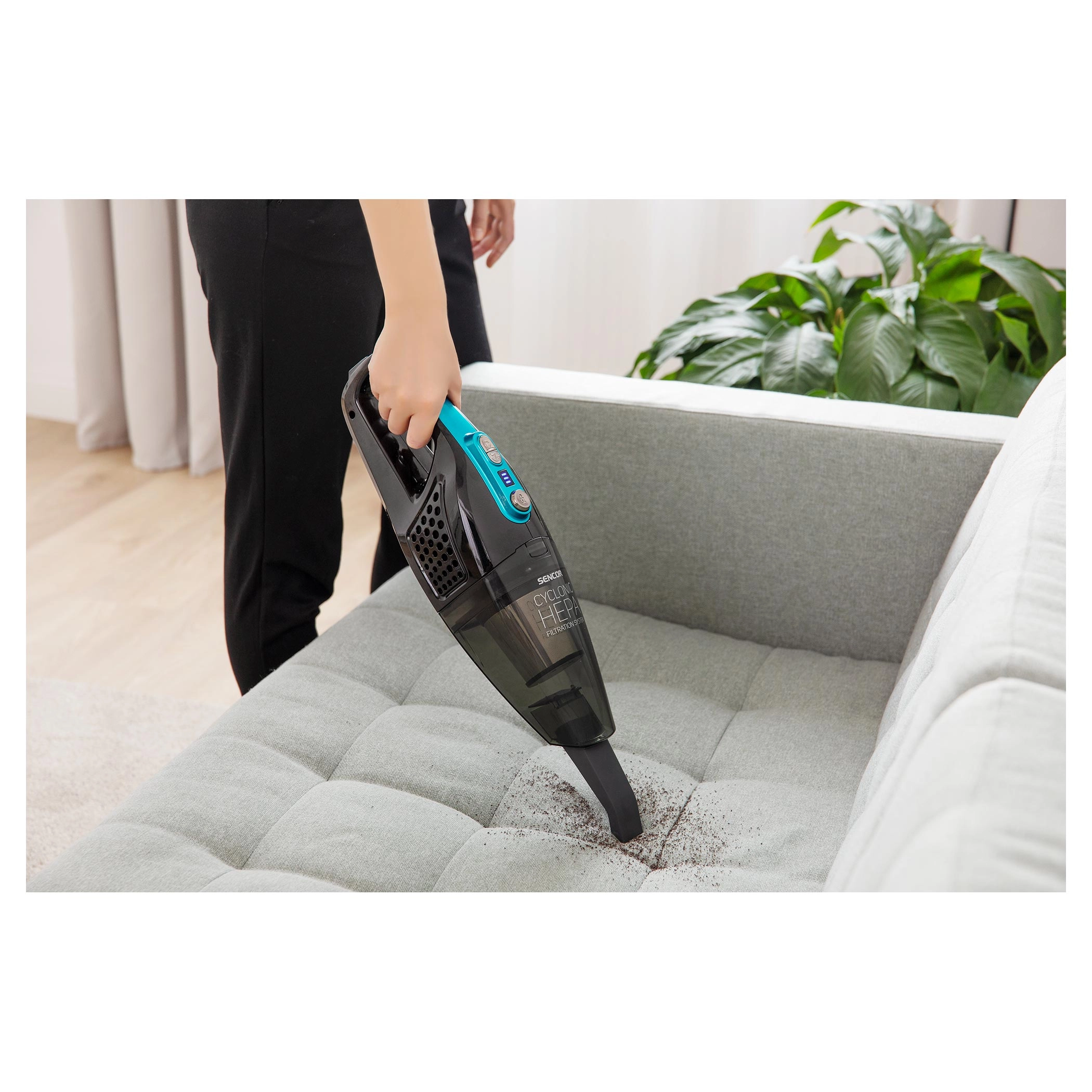 جارو شارژی سنکور مدل SVC 7822 TQ دارای ظرفیت 0.5 لیتر و توان 80 وات می باشد. باتری جارو شارژی سنکور از نوع لیتیوم یونی می باشد که پس از 6 ساعت شارژ کامل می شود. سپس می توانید به مدت 20 دقیقه (در حالت عادی و توربو) از این جاروبرقی استفاده کنید. جارو شارژی سنکور به منظور جلوگیری از ورود مجدد مواد معلق به محیط، مجهز به فیلتر هپا می باشد. عملکرد دوگانه دستی و عصایی آن را به یکی از کاربردی ترین جاروبرقی ها تبدیل کرده است. جارو شارژی Sencor می تواند سطوح سرامیکی را به خوبی برای شما یکباره تمیز کند.