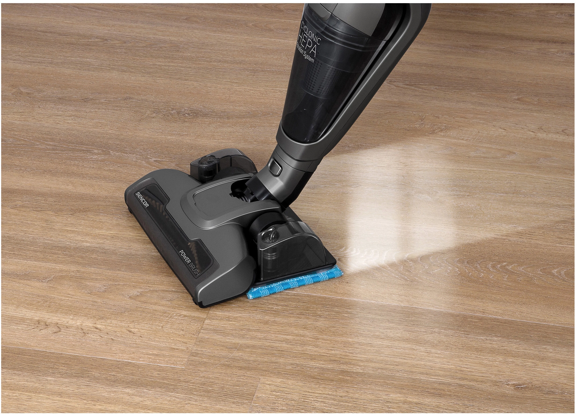 سنکور SVC 8668AT یک جاروبرقی عمودی بدون کیسه گرد و غبار است. یک انتخاب ایده آل برای نظافت کامل منزل شما. تقریباً روی هر سطحی از کف گرفته تا مبلمان قابل استفاده است. سر مکش که می تواند 180 درجه بچرخد، حتی مکان های صعب العبور را به راحتی در دسترس قرار می دهد. عملکرد آن توسط یک باتری لیتیوم یونی 18 ولتی 2200 میلی آمپر ساعتی تضمین می شود که جاروبرقی با آن می تواند تا 45 دقیقه کار کند. دستگیره با طراحی ارگونومیک و نور LED تعبیه شده در سر مکش تجربه مثبت کاربر را تضمین می کند. یک ایستگاه شارژ برای شارژ دستگاه موجود است.