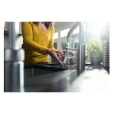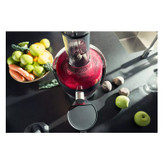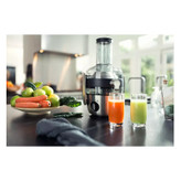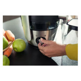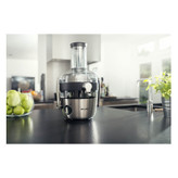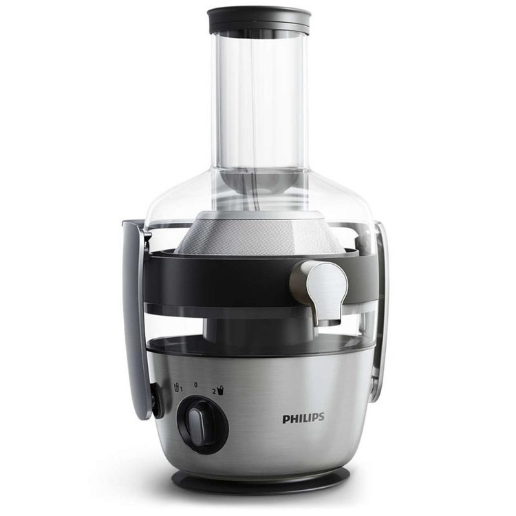 آبمیوه گیری فیلیپس مدل HR1922 با برخورداری از توانایی بالا و کاربری ارگونومیک گزینهای بسیار مناسب جهت تهیه روزمره انواع آبمیوههای طبیعی بهشمار میرود. طراحی ساخت این محصول از متریال پلاستیک و استیل تلفیقی زیبا را ایجاد کرده که جلوه ظاهری جذابی را نیز به محیط مورد استفاده دستگاه میبخشد. برخورداری از پایه لاستیکی با ثبات بالا در نگهداری دستگاه از حرکت آبمیوه گیری در حین انجام فرایند جلوگیری میکند. تعبیه فناوری FiberBoost در این دستگاه موجب شده است با انتخاب بافت آبمیوه حاصله در قالب دو سرعت، از طریق کنترلکننده چرخشی بر روی بدنه آبمیوه گیری فیلیپس مدل HR1922 به آبمیوهای تا میزان 50 درصد فیبر بیشتر دسترسی پیدا کنید. دهانه ورودی 80 میلیمتری این دستگاه موجب شده تا امکان آبگیری میوهها و سبزیجات بدون ایجاد برش بر روی آنها بهآسانی فراهم باشد. با وجود برخورداری دستگاه از موتوری با توان 1200 وات که قادر است فرایند آبگیری بر روی سختترین میوهها و سبزیجات را بدون زحمت به انجام برساند، در عین حال عملکرد این آبمیوه گیری با کمترین میزان صدا و لرزش به انجام میرسد؛ بنابراین میتوانید از دستگاه در هر زمان از شبانه روز بدون نگرانی استفاده کنید. انجام عملکرد دستگاه با ورود میوه و سبزیجات و ایجاد برش و آبگیری توسط تیغهها آغاز میشود. سپس با گذر آبمیوه از فیلتر استیل و غربال تفالهها و یا هستههای میوهها، نوشیدنیای کاملا خالص و طبیعی و خوش طعم در اختیار شما قرار میدهد. تفالههای باقیمانده به مخزن 2.1 لیتری تعبیه شده برای همین امر، وارد میشوند. ظرفیت مخزن آبمیوه گیری فیلیپس مدل HR1922 نیز برای هربار انجام فرایند 1 لیتر است. تعبیه سیستم ضدچکه بر روی دهانه خروجی دستگاه، از پاشیدن آبمیوه بر روی محیط پیشخوان قرارگیری آن جلوگیری کرده و حفظ نظافت محیط را متضمن میشود. امکان شستشوی ابتدایی دستگاه با ریختن آب درون مخزن و چرخش آن، به فرایند نظافت دستگاه سرعت میبخشد.