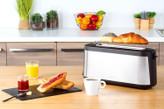 همچنین می توان رول، کروسان، باگت و سایر نان ها را به صورت یکپارچه بر روی آن جای داد. خروجی 1000 وات مقدار خوبی برای این توستر شیار بلند محسوب می شود که می توان با آن انتظار نتایج سریع را داشت. توستر استیل ضد زنگ Tefal TL 430 با برخورداری از کاربری آسان و منحصر به فرد، کاملاً متناسب با هر آشپزخانه ای است که به یک بالابر برای از بین بردن برش های کوچک نان و سینی جمع آوری متحرک برای تمیز کردن آسان نیز مجهز شده است.