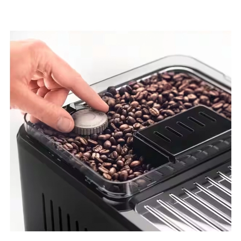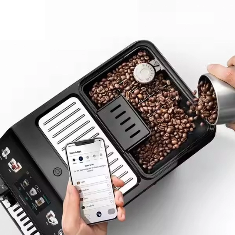 دیگر قابلیتهای این دستگاه اتصال به گوشی هوشمند است. این قابلیت به شما کمک میکند از راه دور یک نوشیدنی ناب را برای خود سرو کنید. این مدل از اسپرسوسازهای دلونگی رنگ سفید و مشکی به همراه طراحی منحصر به فردی دارد که هارمونی جذابی را ایجاد کرده و با هر فضایی به راحتی ست میشود. این اسپرسوساز دارای دو نازل قهوه است که شما را قادر میسازد تا دو فنجان را به صورت همزمان پر کنید. همچنین مخزن شیر این دستگاه در سمت چپ قرار دارد که به کمک آن میتوانید نوشیدنیهای متنوعی را با شیر سرو کنید و یا حتی شیر گرم کنید. حجم مخزن شیر این دستگاه ۵۰۰ میلی لیتر است.