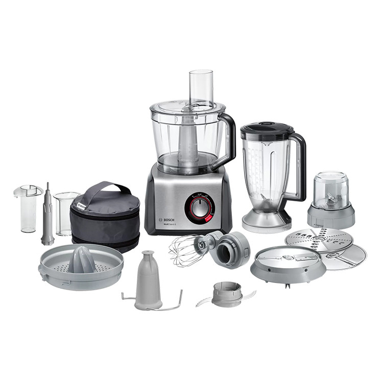 شرکت بوش با طراحی غذاساز MC812M853G شما را از سایر محصولات آشپزخانه بینیاز کرده و پاسخگوی بسیاری از نیازهای آشپزی شما خواهد بود. سری MULTI TALENT 8 یکی از کاملترین مدلهای غذاساز موجود در دنیا است. تقریبا هیچکاری برای این دستگاه غیر ممکن نیست؛ در این سری بیش از 50 عملکرد متنوع برای برش دادن سبزیجات، آماده کردن خمیر، خرد کردن گیاهان معطر و خشک، مخلوط کردن میوه، رنده کردن پنیر، هم زدن خامه، ترکیب سوپ، خرد کردن یخ و …. تعبیه شده است. همه ما دوست داریم با کمترین زحمت برای درست کردن وعدههای غذایی روزانه خود از مواد اولیه تازه استفاده کنیم. بهوسیله خردکن این محصول تهیه مواد اولیه به صورت تازه برای مصارف روزمره امکانپذیر شده است. اسموتی و لیموناد تنها زمانی خوشمزه است که تازه درست شده باشد. با استفاده از لوازم جانبی برای آبگیری مرکبات، توانایی تهیه آبمیوه تازه و خوشمزه را خواهید داشت. برای درست کردن اسموتی بهصورت روزانه دیگر نیاز به زحمتهای معمول نخواهد بود و به آسانی با پارچ مخصوص 1 لیتری، برای خود و دیگران یک اسموتی تازه و دلنشین درست کنید. بعد از استفاده از پارچ برای نظافت تنها کافی است که آن را داخل ماشین ظرفشویی گذاشته تا شسته شود. از آنجایی که در حال حاضر یکی از جدیدترین و کاملترین غذاسازهای بوش در بازار است، قیمت غذاساز بوش مدل سری مولتی تلنت ۸ از سایر مدلهای پیشین خود بالاتر است.