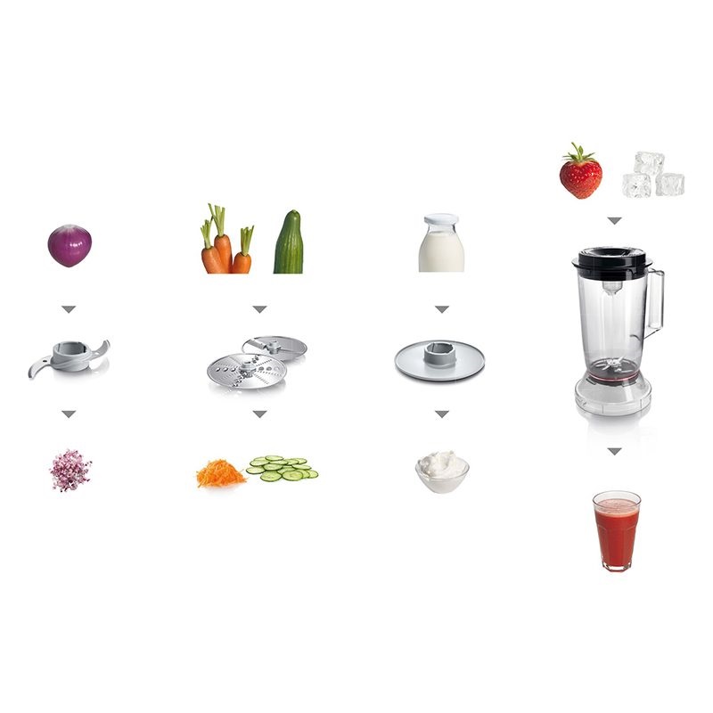 دستگاهی MultiTalent 3 با طراحی ساده و در عین حال شیک و کارایی بالا برای آشپزخانه شما از بارزههای غذاساز بوش مدل BOSCH MCM3201B محسوب میشود. آشپزخانه شما بی شک نیازمند وسیله یا وسایلی است که بتواند شمارا در تهیه انواع ترکیبات غذایی روزمره و ضروری در سریعترین زمان ممکن یاری کند. غذاساز چندکاره یکی از این کالاها است که در قالب یک پکیج شامل چندین عملکرد انواع نیازهای شما را مرتفع میسازد. دیگر ویژگی مثبت غذاساز چندکاره 3201B بوش این است که با خرید آن در فضای آزاد آشپزخانه شما صرفهجویی خواهد شد. همچنین با مقایسه قیمت غذاساز به نسبت عملکردها بهصورت تکبهتک و مجزا، پی خواهید برد که خرید این دستگاه کاملاً مقرونبهصرفه است. توان موتور 800 واتی این دستگاه با قابلیت تنظیم در دو سرعت به انضمام عملکرد پالس، تهیه انواع مواد غذایی برای دستیابی به بهترینپ نتیجه ممکن را میسر کرده است. برخورداری از عملکرد Pulse با استفاده از حداکثر توان موتور دستگاه موجب شده انجام فرایند بر روی سرسختترین مواد غذایی برای ایجاد ترکیبی یکنواخت و بدون اشکال بهآسانی صورت پذیرد. تعداد 30 عملکرد متنوع غذاساز MCM3201B بوش، از طریق اتصال پیوستهای متنوع انجام میشود؛ پارچ مخلوطکن 1 لیتری، کاسه غذاساز 2.3 لیتری با یک قطعه ورودی مجزا و یک عدد ابزار دیسک مربوط به قرارگیری تیغههای رنده مواد غذایی با 2 عملکرد متفاوت از جمله ابزارهای کاربردی این غذاساز چندکاره به شمار میآیند. کاسه غذاساز 2.3 لیتری، با امکان تهیه خمیر تا میزان 0.5 کیلوگرم، انتخابی مناسب برای یک خانواده کوچک خواهد بود. تیغه بهکاررفته در این غذاساز چندکاره از جنس استیل ضدزنگ و فناوری پیشرفته MultiLevel6 عملیات برش انواع مواد غذایی را به بهترین شکل ممکن به انجام میرساند. تیغه استیل تعبیه شده در یک دیسک دستگاه امکان انجام فرایند رنده و برش در قطعها و اشکال مختلف را به راحتی مهیا میکنند. تمام بخشهای پلاستیکی مرتبط با مواد غذایی در این غذاساز فاقد ماده شیمیایی مضر BPA بوده بنابراین ترکیبات تهیه شده دارای حداکثر سلامت و کیفیت ممکن است. در کنار طراحی جمعوجور و ارگونومیک این غذاساز که متناسب با چیدمان هر نوع دکوراسیون آشپزخانه است، به لطف وجود پایههای ضدلغزش که از حرکت دستگاه در حین فرایند جلوگیری کرده و همچنین تعبیه قفل درپوش، ایمنی انجام فرایند نیز تضمین میشود. تفکیک قطعات و امکان شستشوی آسان آنها پس از هر بار انجام فرایند دیگر امکان مهم غذاساز بوش مدل BOSCH MCM3201B بهحساب میآید.