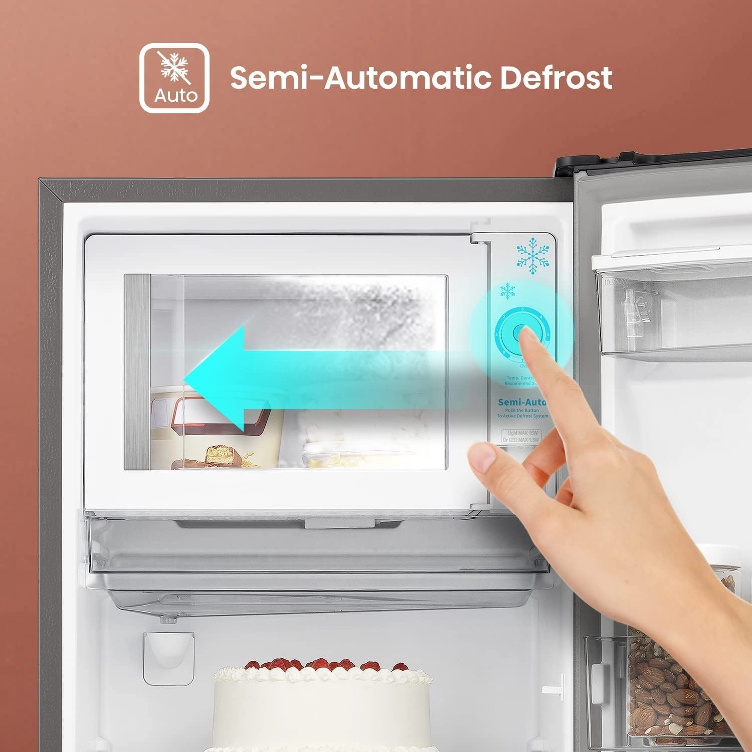 هایسنس از حداکثر فضای داخلی این یخچال استفاده کرده تا با توجه به اندازه کوچکی که دارد اما قابلیت جای دادن مواد غذایی زیادی را در هر دو بخش یخچال و فریزر داشته باشد. فریزر کوچک در قسمت بالا و یخچال در قسمت پایین قرار گرفته است. در مقایسه با هم یخچال ظرفیت بیشتری دارد.