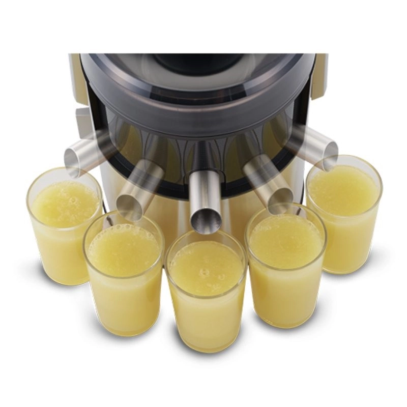 دهانه ورودی 7.5 سانتیمتر است که به آسانی میتوانید از یک سیب کامل بدون نیاز به خرد کردن استفاده کنید و با کمترین زحمت آب سیب تازه و لذیذ را تهیه نمایید. جنس تیغه این دستگاه از استیل ضدزنگ است که بهرهگیری از این متریال موجب افزایش طول عمر تیغهها و تیزی آن میشود. تیغه تمام فلزی s شکل این محصول میوه را در نقطهای که باید آب گرفته شود نگه میدارد و از چرخیدن میوهها جلوگیری میکند تا فرآیند آبگیری به صورت کامل روی آن انجام پذیرد. پس از عبور آبمیوه از فیلتر، تفالهها در مخزن مختص به خود جمع شده و آبمیوه به داخل مخزن جداگانه میرود. تیغه برای برش با زاویه پایین و فیلتر ریز فلزی برای جدا کردن تفالهها موجب بهدست آمدن یک آبمیوه تازه و خوشطعم برای رفع عطش به خصوص در روزهای گرم تابستانی میشود. ظرفیت مخزن آبمیوهگیری MJ-DJ31 پاناسونیک، 1.5 لیتر و ظرفیت مخزن تفاله آن 2 لیتر است.