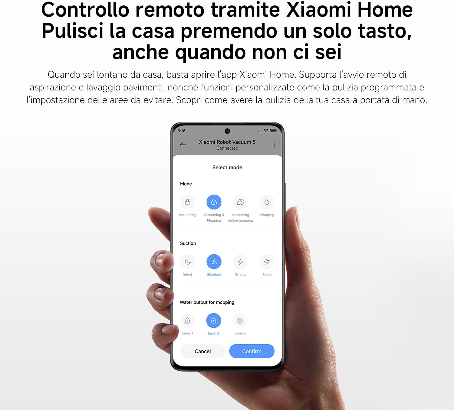 • مدل محصول: Xiaomi Robot Vacuum 5,• مدل: OV31GL,• ابعاد: قطر 350 × ارتفاع 88 میلیمتر,• توان نامی: 55 وات,• ولتاژ نامی: 14.4 ولت ⎓,• ولتاژ شارژ: 20 ولت ⎓,• وزن خالص: 3.75 کیلوگرم,• ظرفیت باتری:,• ظرفیت واقعی (Rated capacity): 4800mAh,• ظرفیت اسمی (Nominal capacity): 5200mAh,• سیستمهای پشتیبانیشده: Android 9.0 یا iOS 12.0 و بالاتر