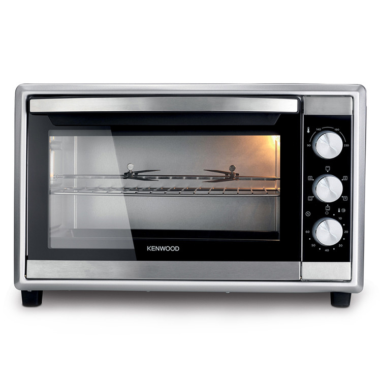 آون توستر کنوود KENWOOD MOM45، با توان مصرفی 1800 وات و انجام عملکردهایی متنوع از تولیدات این برند است. بهره گیری از سیستم گرمایشی دارای 4 المنت حرارتی از جنس استیل و ظرفیت 45 لیتری این دستگاه را برای تهیه طیف متنوعی از مواد خوراکی از قبیل پیتزا، جوجه، ماهی کبابی و… میوه کاملا مجهز کرده است. تعبیه المنت ها در بخش بالایی و پایینی این آون توستر موجب گردش هوای داغ در داخل دستگاه شده بنابراین پختی یکنواخت را در تمام سطح مواد غذایی مدنظر موجب خواهد شد. عملکرد المنت های دستگاه انعطاف پذیر بوده که شامل المنت بالا، المنت بالا و پائین، المنت بالا و فن، المنت بالا و پائین به همراه فن، المنت بالا و جوجه گردان و المنت بالا و پائین به همراه فن و جوجه گردان میشود. قابلیت های توستر MOM45 کنوود شامل فر، گریل، تُست، پخت و یخ زدایی است. ویژگی هایی همچون امکان تنظیم دما و زمان و همچنین کنترل المنت ها توسط کنترلرهای چرخشی، وجود لوازم جانبی از قبیل توری داخل فر، دستگیره جوجه گردان، سیخ جوجه گردان و سینی و امکان طبقه بندی تا سه طبقه دیگر امکانات آون توستر کنوود KENWOOD MOM45 به شمار میآید.