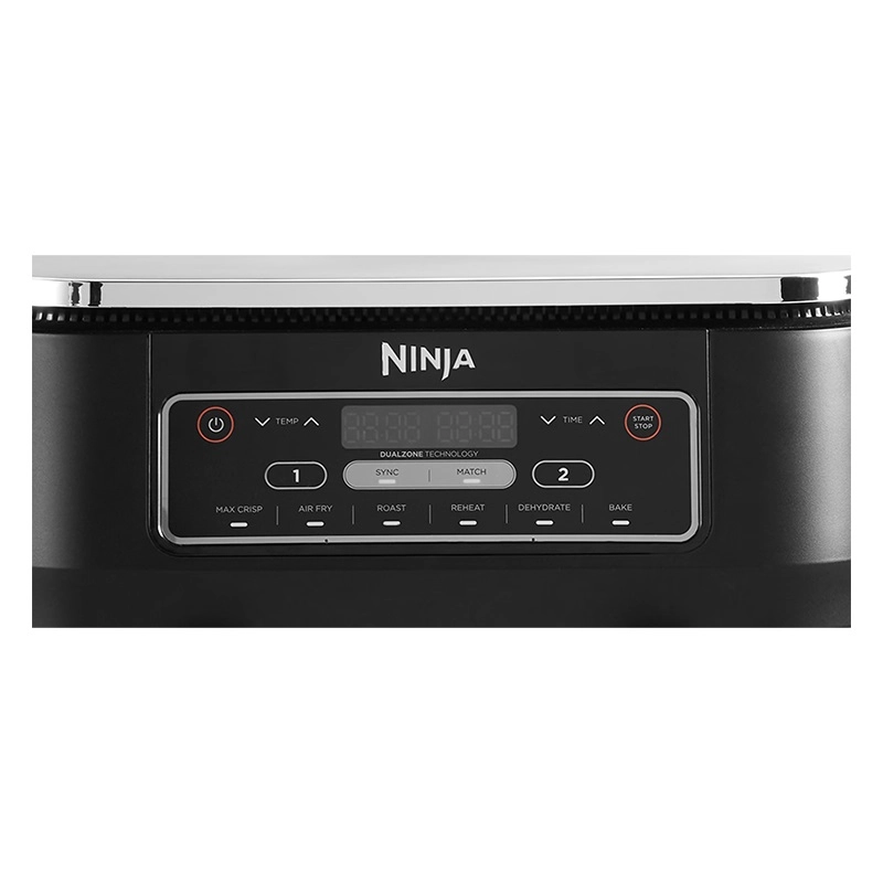 از طریق کنترل پنل لمسی سرخ کن نینجا مدل AF300 با ظاهری کاربرپسند بهآسانی میتوانید برنامههای از پیش تعریف شده را اعمال کنید و یا بهصورت دستی دمای ایدهآل و مدت زمان موردنظر را بهصورت مجزا برای پخت کامل تنظیم کنید. در کنترل پنل این دستگاه از ۶ برنامه پیشفرض تعبیه شده است که دما و زمان موردنیاز برای پخت کامل را برای شما بهصورت خودکار تنظیم میکند. سایر دکمههای پنل این محصول شامل دکمه خاموش و روشن، دکمه شروع و توقف، دکمه همگامسازی فرایند و دکمه ایجاد تطابق دو سبد برای فرآیند آشپزی است. کیفیت بالای سرخ کن با تمام این ویژگیها به انضمام برنامههای خودکار دستگاه موجب شده قیمت هواپز نینجا در مقایسه با سایر برندها کمی بالاتر باشد.