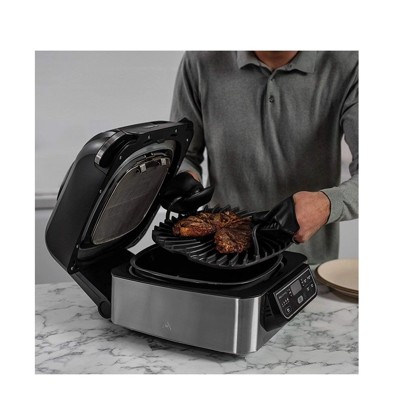 گریل: غذاهای دلخواه خود را به جای فضای باز، در منزل و از طریق سرخ کن نینجا مدل AG301 گریل کنید. از تهیه همبرگرهای آبدار، استیک، مرغ، غذاهای دریایی و سبزیجات گریل شده لذت کامل را خواهید برد. کنترل میزان گریل مواد غذایی در 4 سطح کم، متوسط، زیاد و حداکثر، تسلط شما را در دستیابی به بهترین نتایج موردنظر خود در تهیه مواد غذایی تازه یا منجمد افزایش میدهد.