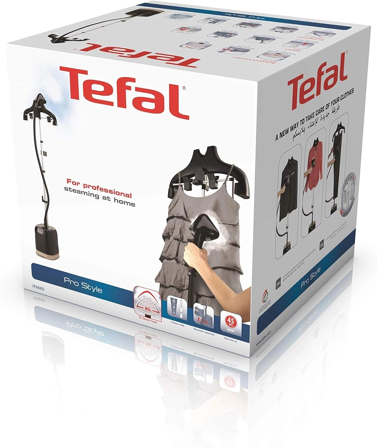 اتو بخارگر تفال مدل TEFAL IT3420، با توان مصرفی 1700 وات با بخار دهی مداوم 30 گرم در دقیقه از سری اتو بخارهای دستی برند تفال است. ظرفیت مخزن آب این اتو بخار 1.5 لیتر بوده که با پر کردن آن تا 40 دقیقه قادر به اتوکشی خواهید بود و از سیستم بخاردهی متغیر بهره میبرد. انعطاف پذیری مناسب و بالای شلنگ دستگاه از بروز آسیب و صدمه در حین فرایند اتوکشی جلو کرده و نیز فرایند اتوکشی را آسان میکند. با برخورداری این اتو بخارگر تفال از سه حالت مختلف برای تنظیم بخار، از ایجاد آسیب به بافت پارچه جلوگیری کرده و موجب افزایش عمر استفاده از آن میشود. بدون نیاز به تخته اتو یا تحویل لباس به خشکشویی قادر خواهید بود لباس خود را فقط در 45 ثانیه به صورت افقی و عمودی اتو کنید. وجود سری فلزی نوک تیز دستگاه را قادر خواهد کرد که چین و چروک های درز های لباس و زیر دکمه را به راحتی از بین ببرد. همچنین سری با ابعاد XL فرایند اتوکشی را تسریع میبخشد. برخورداری دستگاه از سری برسدار برای نفوذپذیری هرچه بیشتر بخار بر روی سطح پارچه فرایند چروکزدایی را با دستیابی به بهترین نتایج ممکن همراهی میکند. سیستم رسوب زدایی Draining System از جمع شدن رسوب در مخزن آب و بسته شدن منافظ دستگاه جلوگیری میکند. امکان استفاده از آب لوله کشی شهری دیگر ویژگی بخارگر تفال است.