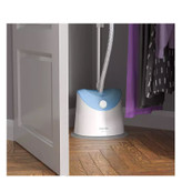 اتو بخارگر فیلیپس مدل PHILIPS GC482 از سری EasyTouch این برند با طراحی خوشترکیب و جمعوجور مختص استفاده فرایند روزانه چروکزدایی از روی سطح انواع لباس خواهد بود. حفظ کیفیت پارچه در حین فرایند بخاردهی موجب شده تا هر نوع جنس از پارچه حتی ابریشم و ترمه نیز با این دستگاه قابلیت بخاردهی را داشته باشد. سیستم بخاردهی یکنواخت این بخارگر 1600 واتی قادر خواهد بود تا میزان 99.9% از باکتریهای متداول را از سطح لباس و حتی پرده و ملحفههای شما را از بین ببرد. فرایند اتوکشی همواره نیازمند آماده کردن میز اتو و در نتیجه صرف زمان است؛ وجود رخت آویز در اقلام بخارگر GC482 فیلیپس موجب شده تا انجام این فرایند به آسانی و تنها با آویزان کردن لباس و در مدت زمانی بسیار کوتاهتر قابل به انجام برسد. همچنین ارتفاع میله آویز پارچه برای نصب انواع لباس قابل تغییر است. مخزن آب این دستگاه دارای ظرفیت 1.4 لیتر و دهانه تا میزان 80 درصد بزرگتر از مدلهای مشابه بوده که قابلیت جداسازی آسان و سریع برای هر بار پر کردن آب را داراست. میزان بخاردهی مداوم دستگاه 32 گرم بر ثانیه بوده که با اعمال آن به وسیله نازل متمرکز، با اعمال تنها چند حرکت تمامی چین و چروکهای سطح لباس از بین خواهد رفت. گفتنی است، مقدار سطح بخار در 2 تنظیم، نسبت با جنس پارچه و میزان چینوچروک قابلکنترل میباشد. به لطف وجود عملکرد رسوبزدایی Easy Rinse دوام و طول عمر اتو برای استفاده طولانی مدت تضمین خواهد شد. طراحی جمعوجور دستگاه برای جایگیری بی دردسر و وجود دستکش مخصوص در اقلام جانبی برای جلوگیری از ایجاد سوختگی بر روی دستها در هنگام فرایند اعمال بخار از دیگر ویژگیهای اتو بخارگر فیلیپس مدل PHILIPS GC482 به شمار میآیند.