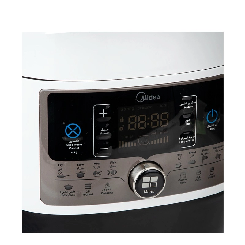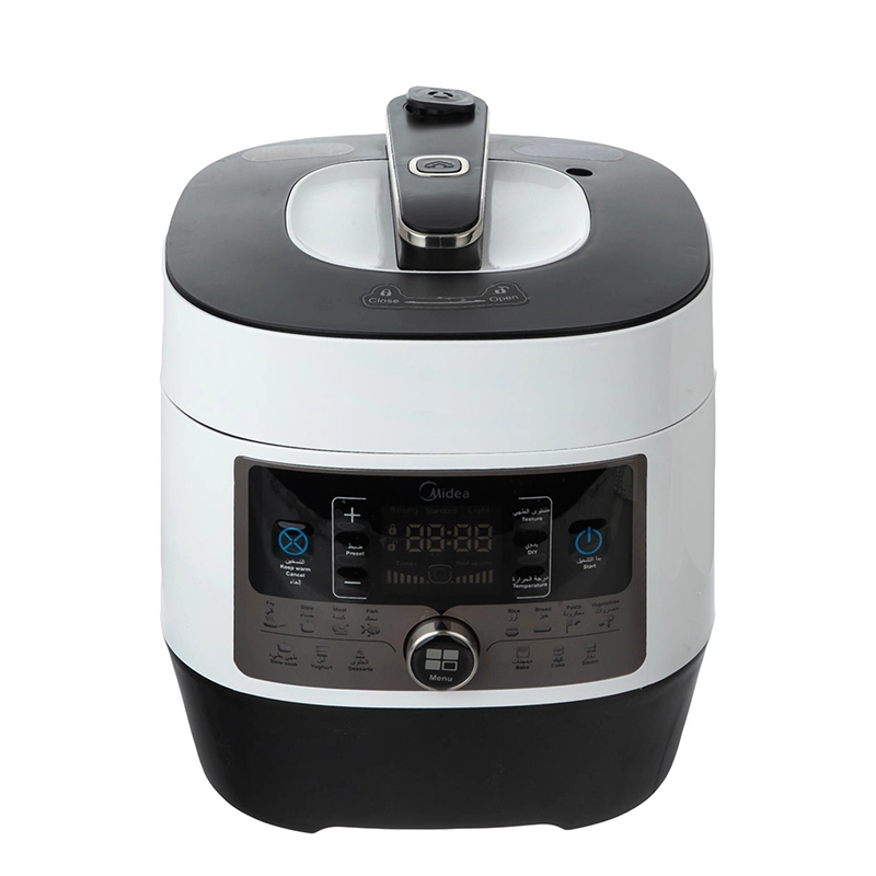 مولتی کوکر مایدیا مدل MIDEA MY-SS6062، با توان مصرفی 1000 وات و حجم 6 لیتر از تولیدات این برند است. سیستم گرمایشی تعبیه شده در این دستگاه موجب تسریع فرایند پخت به میزان 70% شده که این امر در زمان و انرژی شما صرفه جویی خواهد کرد. این دستگاه دارای پنل کاربری با بهره گیری از کنترلرهای لمسی و چرخشی با رابط کاربری آسان بوده که اطلاعات مربوطه را بر روی نمایشگر LED دستگاه به وضح نمایش داده میدهد. در کنار انجام عملکردهای اصلی از قبیل آرامپز، بخارپز، زودپز و پلوپز، مولتی کوکر SS6062 مایدیا شامل 14 برمه پیش فرض بوده که امکان طبخ طیف متنوعی از غذا را در اسرع زمان و بدون نیاز به نظارت شما فراهم میکند. با وجود حالت DIY Chef قادر خواهید بود تنظیمات مربوط به زمان و درجه فرایند پخت و پز را به صورت دستی انجام دهید. درب تعبیه شده بر روی دستگاه علاوه بر تعبیه قفل خودکار هنگام تخلیه فشار، دارای دکمه ای جهت تخلیه فشار نیز میباشد تا از ایجاد صدمات ناشی از سوختگی جلوگیری کند. جنس کاسه دستگاه از آلومینیوم با روکش نچسب بوده تا علاوه بر مقاومت در برابر نچسبیدن غذا، فرایند شستشو را نیز تسهیل ببخشد. امکان پخت با تأخیر و قابلیت گرم نگهدارنده و برخورداری از قابلیت Standby قابلیتهای دیگر مولتی کوکر مایدیا مدل MIDEA MY-SS6062 هستند.