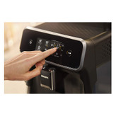 هشدار صوتی خالی بودن مخزن آب برای جلوگیری از آسیب رسیدن به دستگاه، هشدار صوتی برای گیر کردن دانه و یا پودر قهوه در داخل مخزن و سیستم ایمنی خاموش شدن برای جلوگیری از بروز حادثه به شما امکان استفاده از این دستگاه را با خاطر آسوده میدهد. اسپرسوساز تمام اتوماتیک EP2220 شرکت Philips با طراحی جذاب، رنگ آمیزی مشکی، نمایشگر دیجیتال و صفحه کنترل لمسی به جذابیت این دستگاه میافزاید و همچنین زیبایی دوچندانی به محیط آشپزخانه منزل شما میبخشد. فاصله ایدهآل نازل اسپرسو تا لیوان موجب میشود تا طیف گستردهای از لیوانها را بتوانید مستقیم به زیر نازل ببرید و نوشیدنی خود را آماده کنید. قابلیت نوردهی کلیدها به شما این امکان را میدهد تا در تاریکی نیز بتوانید بدون ایجاد مزاحمت برای کسی از نوشیدن یک لیوان قهوه لذیذ لذت ببرید. صفحه گرم نگه دارنده فنجانها آخرین موردی است که شرکت فیلیپس برای شما تعبیه کرده است، برای درست کردن یک لیوان لته لذیذ دیگر نیاز به گرم کردن لیوان با آب جوش نیست و میتوانید پیش از درست کردن آن، لیوان خود را روی صفحه گرم نگهدارنده قرار دهید تا لته شما در دمای ایدهآل آماده گردد.