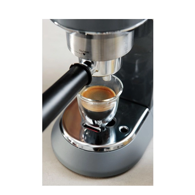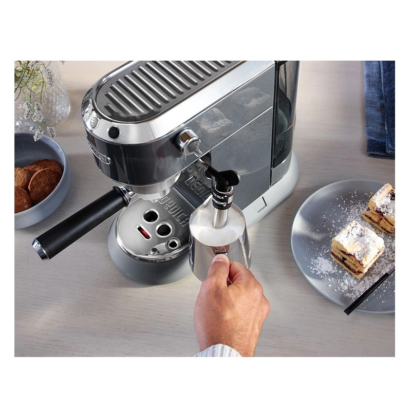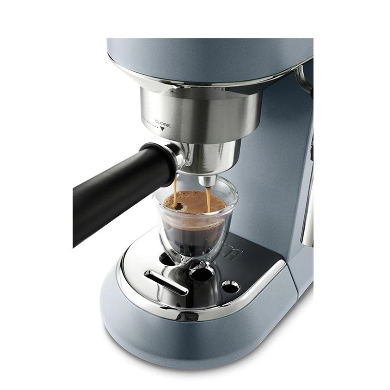 شرکت DELONGHI در سری محصولات DEDICA برای تهیه انواع نوشیدنیهای پایه اسپرسو با بهروزترین تکنولوژیها به یاری شما آمده است. با کمک دکمههای تعبیه شده در این دستگاه توانایی گرفتن اسپرسو برای یک نفر یا اسپرسو سینگل و همچنین با تعویض فیلتر پرتابل میتوانید برای 2 نفر یا اسپرسو دوبل تهیه کنید. با استفاده از دکمه نازل بخار (STEAMER) از شیر، فوم و کف با غلظت مناسب و دلخواه بگیرید تا از کاپوچینو، لته، موکا و… خود لذت دوچندان ببرید. همیشه در نظر داشته باشید که بعد از استفاده دهانه STEAMER نازل که بخار از آن خارج میشود را با استفاده از حولهای لطیف و بخار خود دستگاه پاک گردانید. این امر موجب شده تا دهانه نازل بخار اسپرسوساز آسیب نبیند. در برنامههای پیشفرض قابلیت تنظیم دما، خاموش شدن خودکار و تنظیم سختی آب از طریق منو کاربری وجود دارد که در دفترچه راهنما به طور کامل توضیح داده شده است و با مطالعه آن میتوانید از داشتن و کار کردن با EC 785.AZ نهایت رضایت را تجربه کنید. کنترل دما در سه سطح کم، متوسط و زیاد قابل انجام خواهد بود. همچنین به منظور تنظیم خاموش شدن خودکار دستگاه بعد از انجام فرایند، سه بازه زمانی 9 دقیقه، 30 دقیقه و 3 ساعت برای دستگاه برنامهریزی شده است.