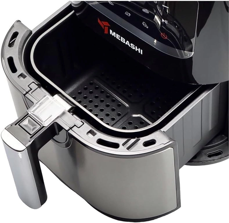 سرخ کن مباشی مدل ME-AF984 که به مانند همه سرخ کن های بدون روغن پخت غذا را از طریق سیستم گردش هوای سریع انجام می دهد دارای توان مصرفی 1600 وات بوده و 10 برنامه پخت و پز بصورت پیش فرض را دارا می باشد.ظرفیت سرخ کن مباشی مدل ME-AF984 دقیقا 4.5 لیتر می باشد و محظفه داخلی آن از جنس تفلون نچسب با کیفیت بسیار بالا ساخته شده است.