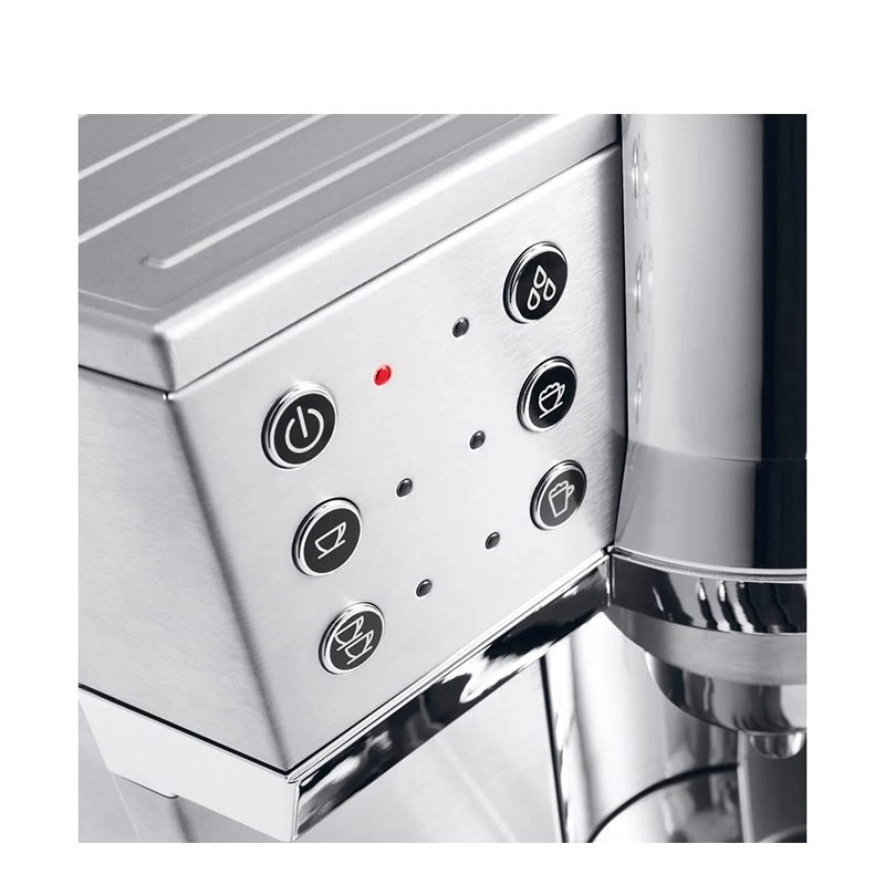 برند دلونگی برای تهیه انواع نوشیدنیهای پایه اسپرسو با بهروزترین تکنولوژیها به یاری شما آمده است. با کمک دکمههای تعبیه شده در این دستگاه توانایی گرفتن اسپرسو برای یک نفر یا اسپرسو سینگل و همچنین با تعویض پرتافیلتر برای ۲ نفر یا اسپرسو دوبل را دارید. تعبیه دکمههای جداگانه برای تولید کف شیر کاپوچینو، فوم شیر برای تهیه لاته ماکیاتو و دکمه آب جوش کار با این دستگاه را برای همه افراد با هر سطح مهارتی آسان کرده است. همیشه در نظر داشته باشید که بعد از استفاده دهانهای که شیر از آن خارج میشود را با استفاده از حولهای لطیف و بخار خود دستگاه پاک کنید. این امر موجب شده تا دهانه نازل بخار اسپرسوساز آسیب نبیند. در برنامههای پیشفرض قابلیت تنظیم دما، خاموش شدن خودکار و تنظیم سختی آب از طریق منو کاربری نیز وجود دارد. کنترل دمای انجام فرایند نیز در سه سطح کم، متوسط و زیاد قابل انجام خواهد بود. همچنین تنظیمات خاموش شدن خودکار دستگاه بعد از انجام فرایند و عدم استفاده پس از مدت ۱۵ دقیقه، ۷۵ دقیقه و ۳ ساعت امکانپذیر خواهد بود.