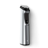 ماشین اصلاح فیلیپس مدل PHILIPS MG7715، با بهره گیری از 11 ابزار برتر شما را قادر میسازد تا سبک منحصر بفرد اصلاح خود را انتخاب کنید. فناوری DualCut تیغه ها عملکرد آن ها را تا 2 برابر نسبت به تیغه های یک طرفه بهبود بخشیده است که اثر بخشی آن پس از 5 سال استفاده به قوت خود باقی خواهد ماند. 11 ابزار موجود در اقلام ماشین اصلاح MG7715 کمک میکند روند آسانی در جهت اصلاح موی سر و صورت و داخل بینی و حتی بدن خود داشته باشید. تیغه های DualCut همچنین برای ایجاد خط ریش و خط موهای پشت گردن نیز انتخاب مناسبی هستند. دستگاه شامل 8 شانه برای اصلاح موهای سر و صورت و بدن از قبیل 2 شانه ریز 1 و 2 میلیمتری، 1 شانه مخصوص اصلاح ریش 3 تا 7 میلیمتری، 3 شانه اصلاح موی سر 9،12 و 16 میلیمتری و 2 شانه اصلاح موی بدن 3 و 5 میلیمتری میباشد. ماشین اصلاح فیلیپس MG7715 دارای باتری ای قدرتمند از نوع لیتیوم-یونی است که با هر بار شارژ کامل به مدت 1 ساعت، امکان استفاده به صورت بی سیم تا مدت زمان 2 ساعت را دارد. طراحی ارگونومیک بدنه موجب خوش دست بودن و عدم لغزندگی دستگاه در حین استفاده شده است. ضد آب بودن تیغه های استیل و بدنه دستگاه امکان استفاده بی دغدغه از آن را در زیر دوش حمام و محیط روشویی و یا همچنین شستشو دستگاه زیر آب به راحتی مهیا میکند.