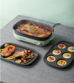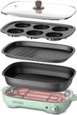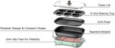 همه کاره - 3 تابه قابل تعویض برای هات دیگ، کباب کردن، پختن، کباب کردن، جوشاندن، خورش و سرخ کردن. سینی پخت 6 شیار برای کلوچه، پتی برگر املت و مینی پنکیک. صفحه گریل دو الگو برای سیخ های خوش طعم، سرخ کردنی، سرخ کردنی و گریل های خوشمزه