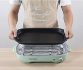راحت - دکمه کنترل دما بدون پله برای تنظیم حرارت دقیق و درب شیشه ای شفاف برای مشاهده پخت و پز و حاوی پاشش. تابه های جداشدنی نچسب برای تجربه تمیز کردن بدون درهم و برهمی و آسان و بدنه لمسی خنک با پایه های ضد لغزش برای پایداری عملیاتی. طراحی مدولار و شکل فشرده برای جا دادن به فضاهای کوچک.