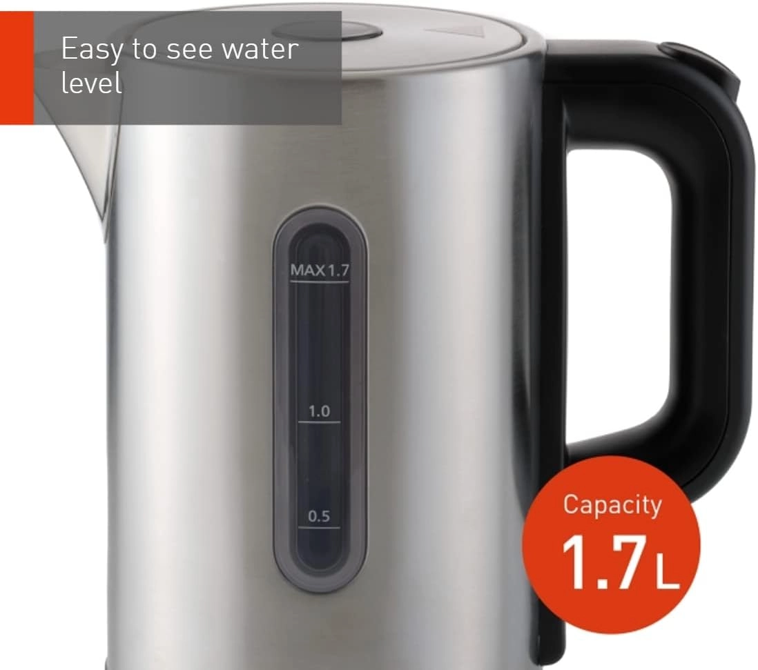 با بدنه استوانه ای استوانه ای مات از جنس استیل ضد زنگ، ظاهری لوکس به آشپزخانه شما می بخشد. ساده و راحت برای استفاده، صبحانه، چای یا قهوه شما را ساده می کند. درب با قطر بزرگ تمیز کردن عمیق داخل کتری و رسوب زدایی را آسان می کند. با فشار دادن کلید پاور و روشن شدن لامپ LED، کتری شروع به جوشیدن می کند. هنگامی که آب به جوش آمد، برق به طور خودکار خاموش می شود، سوئیچ به حالت اولیه خود باز می گردد و لامپ LED برای جلوگیری از داغ شدن بیش از حد دستگاه خاموش می شود.